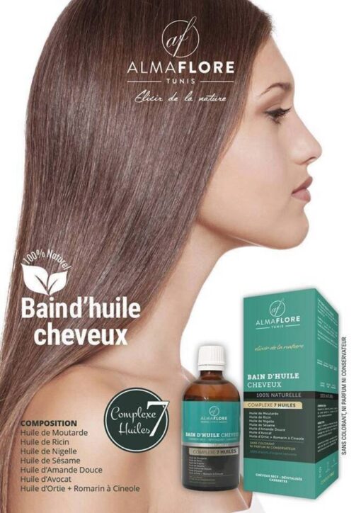 Ce bain de huile est composé de 7 Huiles, 7 composés Actifs ; l huile d amande Douce, huile de nigelle, huile de sésame, huile de Moutarde, huile de ricin et l huile d ortie+ Romarin à Cineole.