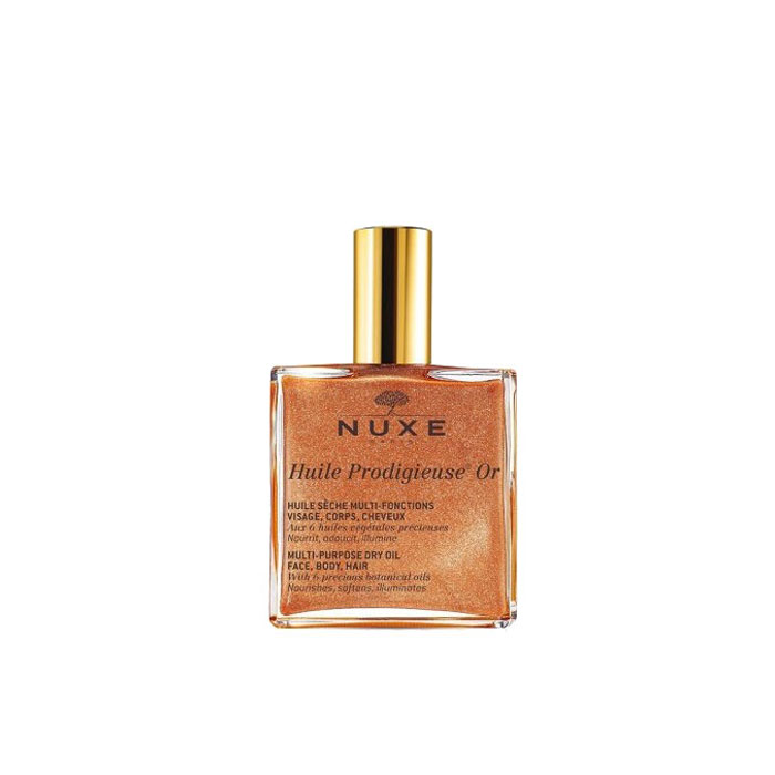 Cette huile sèche version Or à la formule suractivée est une association inédite de 30% dHuiles Végétales Précieuses et de Vitamine E pour nourrir, réparer, adoucir en un seul geste le visage, le corps et les cheveux. Un cocktail unique de 6 Huiles Végétales Précieuses (Bourrache, Extraits huileux de Millepertuis, Amandes Douces, Camélia, Noisette, Macadamia) pour une peau de satin, une chevelure de soie et une amélioration visible de l’aspect global des vergetures. Ses Nacres Or Multi-Reflets illuminent toutes les peaux et tous les cheveux de subtils reflets dorés.